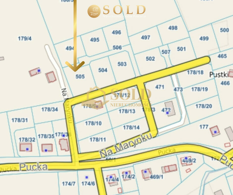 Na sprzedaż działka budowlana w miejscowości Darzlubie, gm.Puck przy ul. Na Marynku, o powierzchni 900m2. Działka o regularnym kwadratowym kształcie, położona na płaskim terenie z wydanymi Warunkami Zabudowy.Nieruchomość położona na nowo powstającym, kameralnym osiedlu domów jednorodzinnych w spokojnej okolicy otoczonej przyrodą, usytuowana w doskonałej lokalizacji dla rodzin oraz wszystkich, którzy pragną uciec od zgiełku miasta, nie rezygnując z jego komfortów i dostępu do całej infrastruktury.